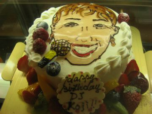 女性向けの情報サイト〔エルバイエル〕や、湊町リバープレース、でも番組を持っておられるDJコージさんのお誕生日ケーキです。関西の、若い女性には、人気急上昇中の、とても、おしゃれで素敵な方です☆